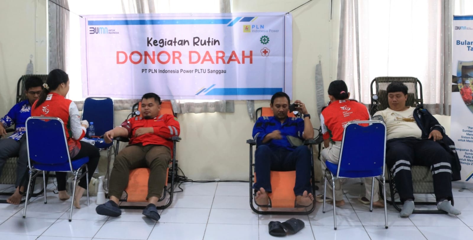 Donor darah yang bertujuan membantu masyarakat yang membutuhkan darah itu diikuti seluruh pegawai dan mitra kerja PLN IP UBP Sanggau.