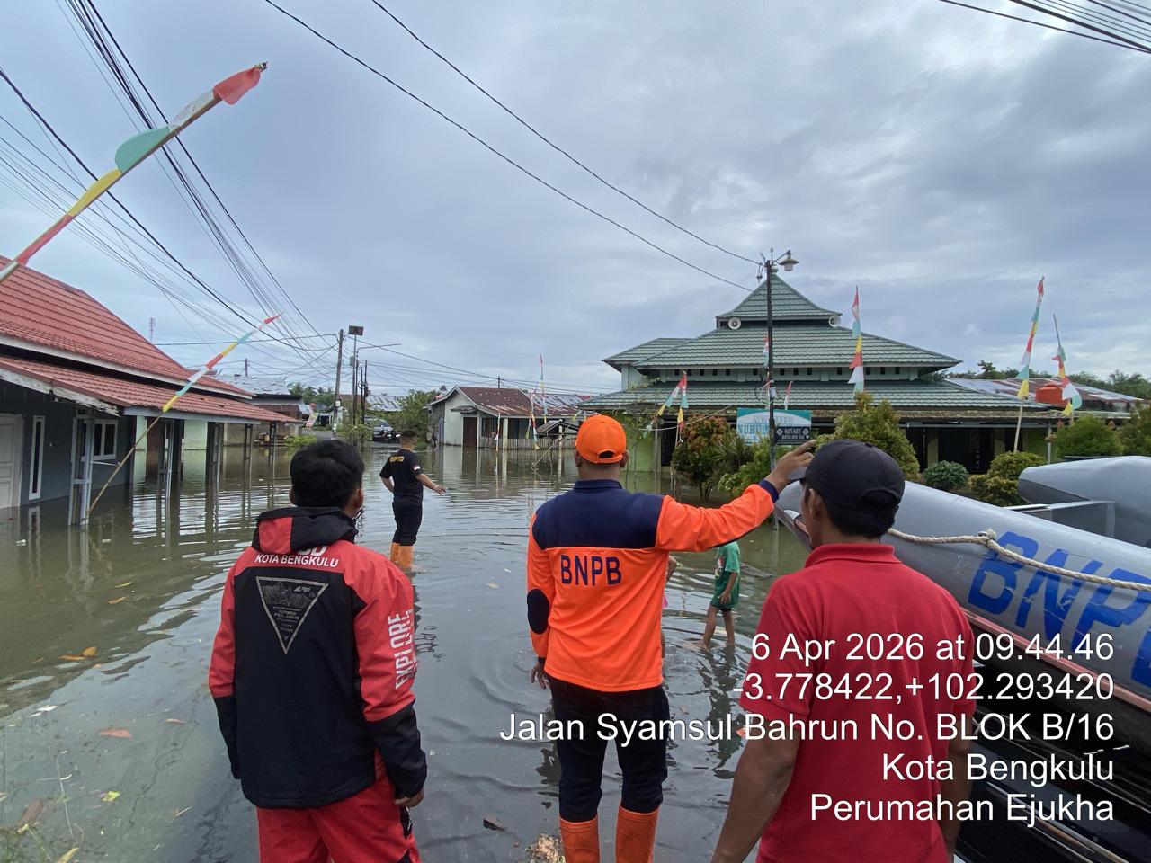 Di Provinsi Bengkulu, hujan dengan intensitas deras pada Senin (6/4/2026) dini hari telah memicu banjir berskala luas di wilayah Kota Bengkulu. Luapan air dengan ketinggian 30 hingga 100 sentimeter tersebut merendam 2.855 unit rumah, satu fasilitas ibadah, dan satu fasilitas pendidikan yang tersebar di 26 kelurahan pada delapan kecamatan. Merespons kejadian tersebut, BPBD Kota Bengkulu segera menerjunkan personel untuk melakukan asesmen, mengevakuasi warga, mendistribusikan logistik, serta mendirikan tenda pengungsian darurat.